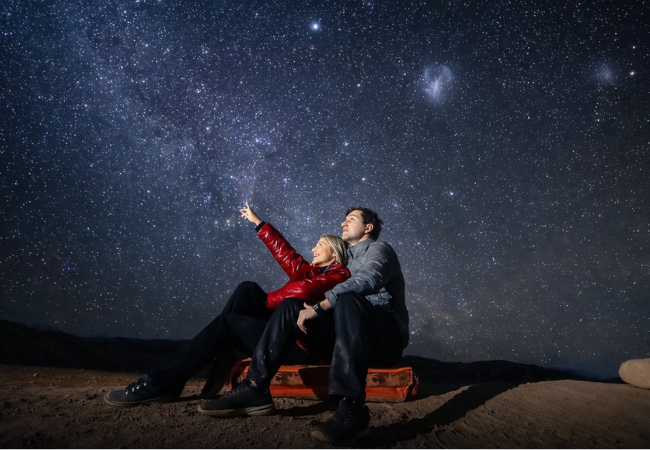 Una vez en el corazón del salar, tendrás la oportunidad de contemplar el cielo nocturno repleto de estrellas y disfrutar del espectáculo natural que convierte este lugar en un espejo del universo. La ausencia total de contaminación lumínica hace que cada constelación, planeta y destello de la Vía Láctea se reflejen sobre el manto blanco de sal.